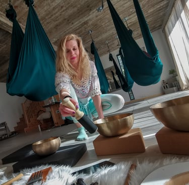 From her beginnings in ballet and fitness, Jelena discovered yoga and pilates before embracing a new dimension of practice: Aerial Yoga. She founded SupAERIAL Fitness Yoga in Belgrade, creating authentic programs and pioneering the first Floating Sound Bath in the city. As a certified gong and sound bowl practitioner, Jelena continues to elevate wellness experiences, merging sound, movement, and suspension into transformative journeys.