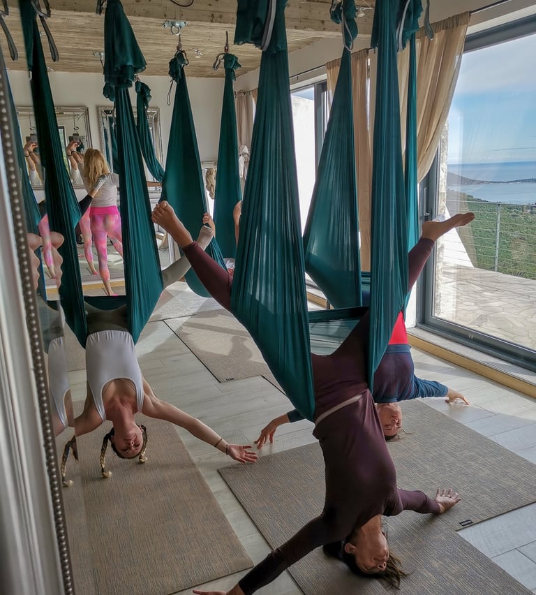 At Villa Diva, these benefits were amplified by the tranquil sea views and the villa’s dedicated aerial studio, creating a sanctuary for both body and spirit.